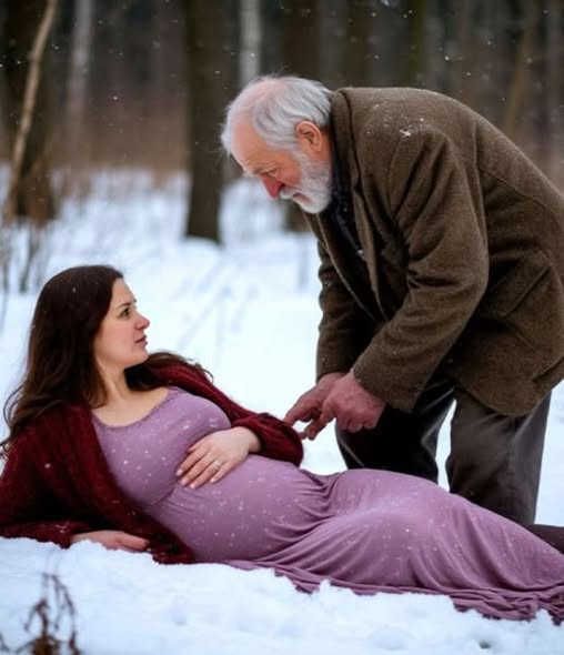 Сначала показалось — мешок или какой-то мусор. Но, подойдя ближе, понял: это человек. Женщина. Она ползла по снегу, оставляя за собой слабый след. Её пальцы были посиневшими, губы дрожали, а живот под стареньким пальто выдавался вперёд — она была беременна. Близко к родам.