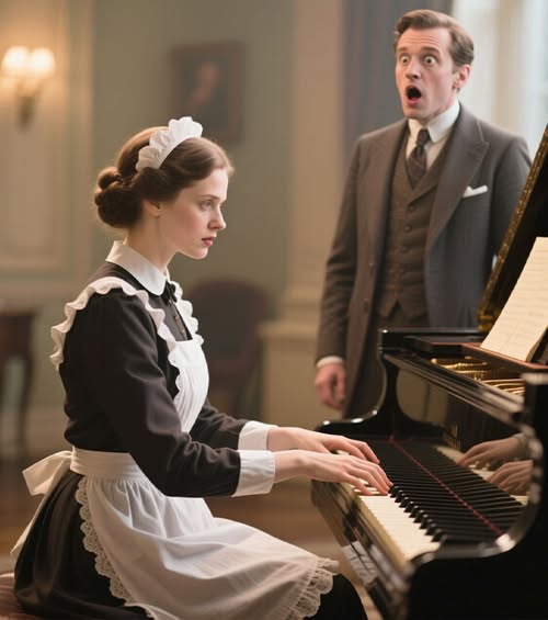 Лена появилась в том же простом платье, в котором работала. Без прикрас, без масок, без попыток казаться кем-то другим. Она не стала превращаться в артистку — она просто перестала быть горничной. Села за рояль, к которому раньше приближалась на цыпочках, и положила руки на клавиши, как на старого друга, которого наконец-то нашла.