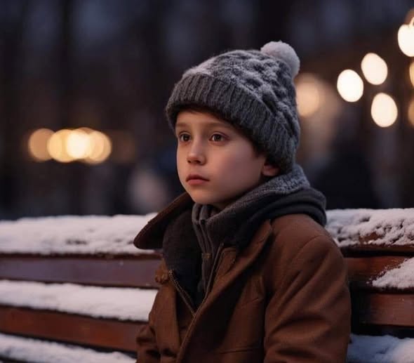 Вдруг он услышал детский плач. Посмотрел по сторонам и увидел на скамье мальчика в коричневом пальто и серой шапочке. Он громко плакал, размазывая слёзы по щекам.
